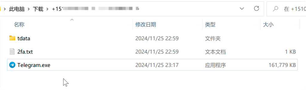 4、将 Telegram.exe(Telegram) 文件拖进购买的手机号目录下