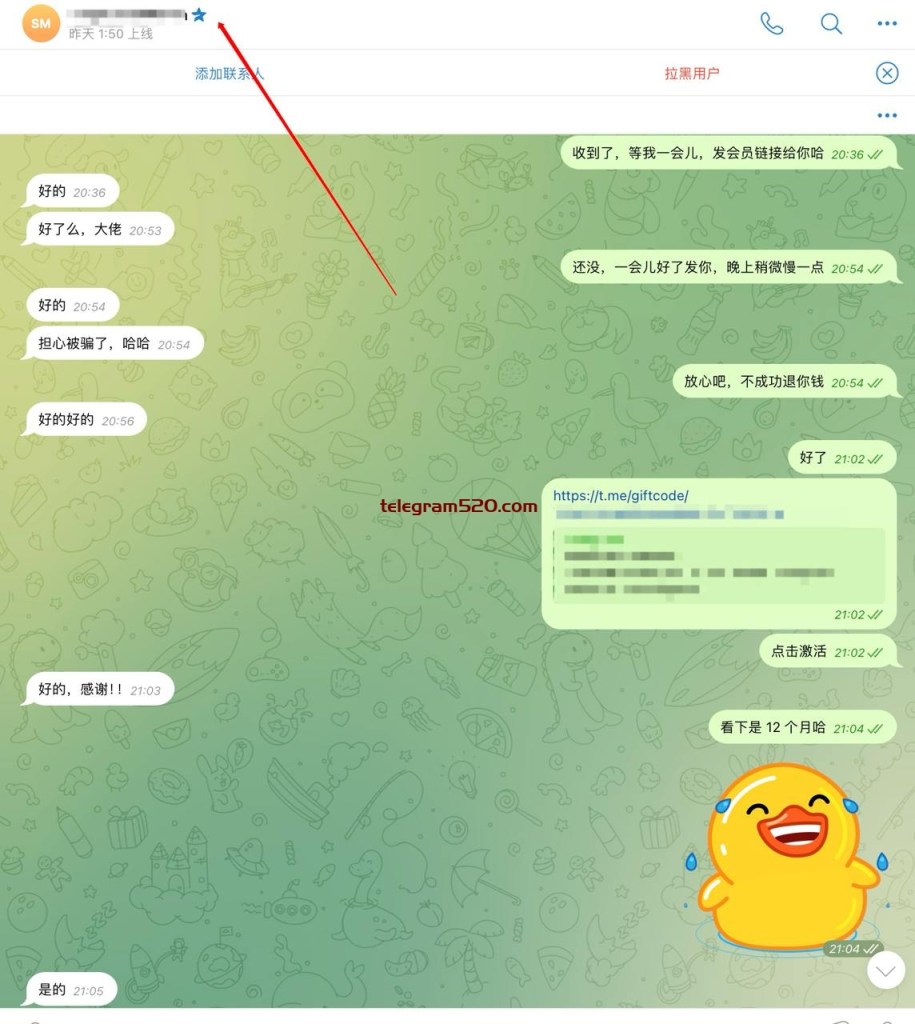 3、好友赠送开通telegram会员,仅限一次