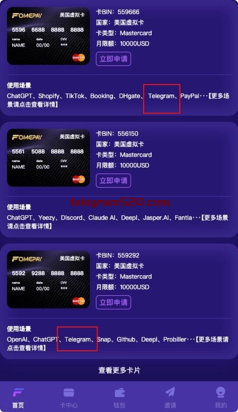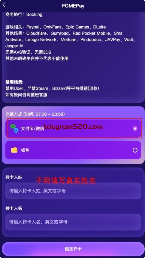 备注:选择使用场景支持 telegram的来开卡,cvc信息一定不要泄露给其他人